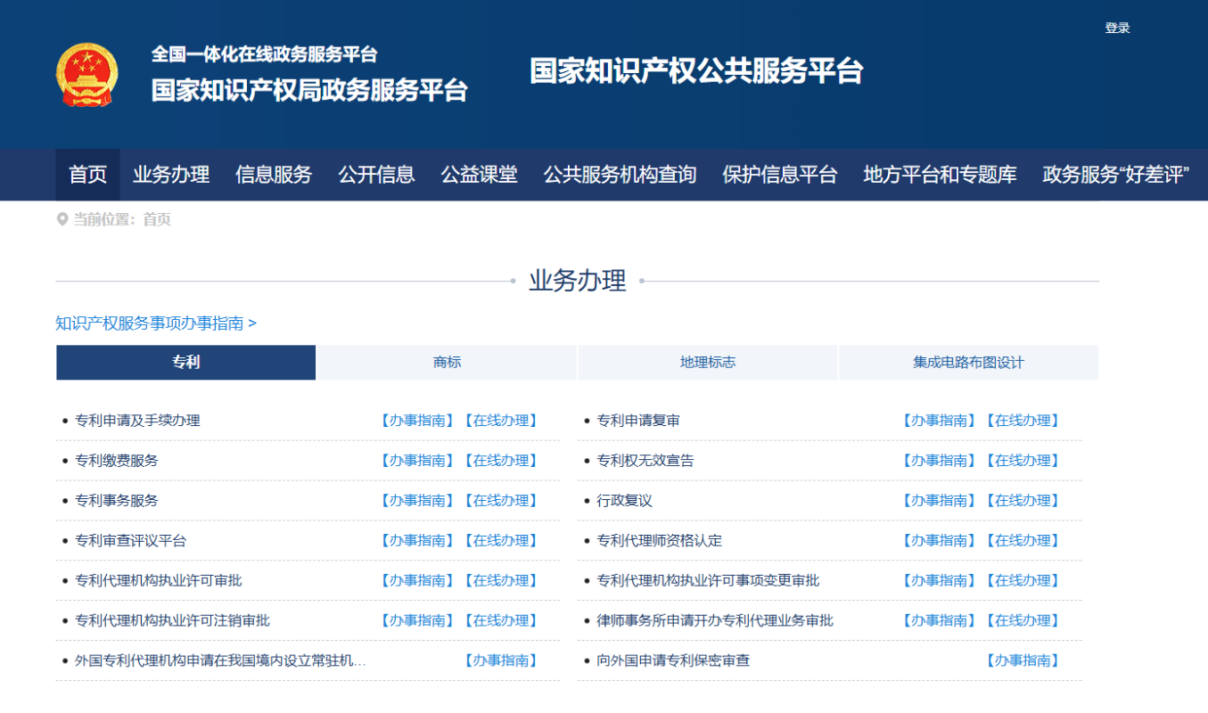 國家知識產權公共服務平台網頁截圖