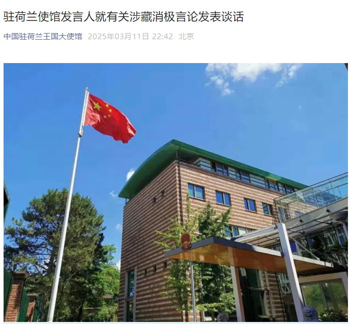 “中國駐荷蘭使館”微信公眾號截圖 中國駐荷蘭使館發言人當天說,西藏自古以來就是中國不可分割的一部分,藏族人民是中華民族大家庭的成員,早已為歷史所決定、為人民所擁護、為世界所公認,任何時候都不會改變,也不能改變。西藏和平解放74年來,經濟蓬勃發展,社會和諧穩定,文化傳統得到保護和弘揚,各族人民包括宗教信仰自由、使用和發展本民族語言文字的自由在內的各項權利和自由得到充分保障。 發言人強調,中國政府在涉藏問題上的立場是一貫的、明確的。西藏事務是中國內政,不容任何外部勢力干涉。涉藏問題不是民族和宗教問題,也不是人權問題,而是事關中國主權和領土完整的重大問題。(完) 【編輯:彭玉婷】
