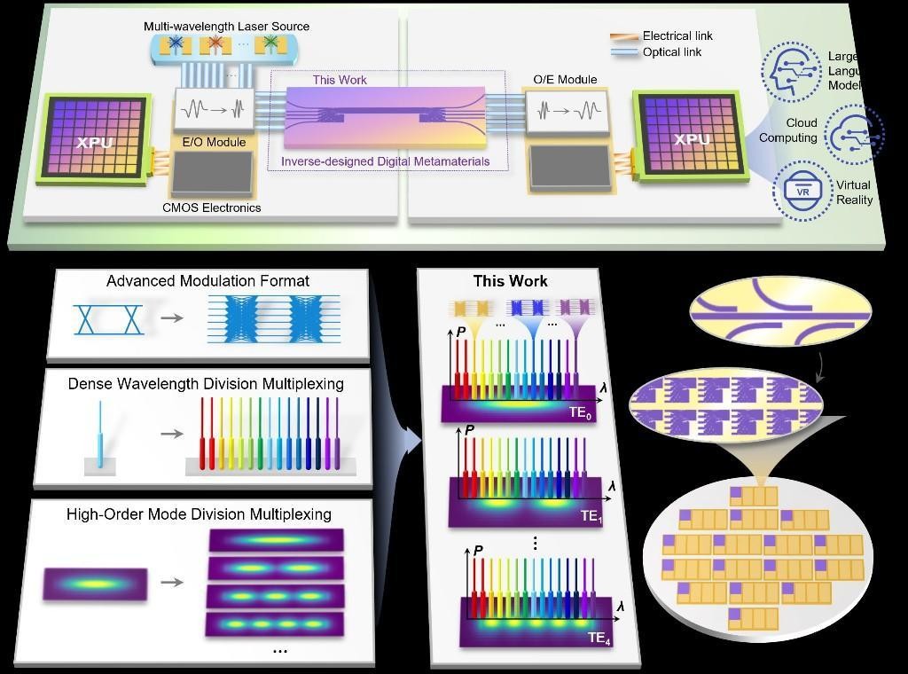 研究成果示意圖。圖源:科技日報/受訪對象供圖 隨著AI模型規模的持續擴大,智算芯片間、算力節點間的通信帶寬不足的問題愈發突出。傳統電子互聯方式已難以滿足GPU集群、超級計算中心和雲計算平台對高速、大容量、高效能數據交換的需求。尤其是在大模型訓練過程中,海量參數需要在計算節點之間頻繁傳輸,互聯帶寬不足不僅降低系統響應速度,甚至可能導致宕機,嚴重影響計算效率與用戶體驗。這一“通信瓶頸”已成為智能計算發展的關鍵挑戰。 該研究團隊通過精確設計和優化,將多維複用技術引入片上光互聯架構,不僅顯著提升了數據傳輸吞吐量,同時在功耗和延遲方面表現卓越,具備極強的擴展性和兼容性,適用於多種高性能計算場景。在此基礎上,團隊設計並研製了一款矽光集成高階模式複用器芯片,實現了超大容量的片上光數據傳輸。實驗結果表明,該芯片可支持每秒38Tb的數據傳輸速度,意味著未來1秒可完成大模型4.75萬億的參數傳遞,顯著提升了大模型訓練與計算集群間的通信性能和可靠性,為人工智能、大模型訓練及GPU加速計算等應用提供了強有力的支持。 這一技術突破不僅為數據中心和高性能計算服務器的光互聯系統提供了新的解決方案,也為人工智能、大規模並行計算及大模型訓練奠定了堅實的技術基礎。 研究團隊表示,未來將進一步優化該技術,並推動其在GPU加速計算、人工智能大模型訓練、大數據處理等領域的應用落地。隨著技術的不斷演進,該方案有望為下一代光互聯通信系統和算力網絡升級提供更高效、低功耗的解決方案。(完) 【編輯:彭玉婷】