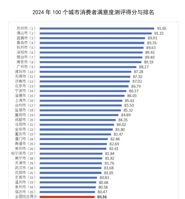 80.36分!2024年中國100個城市消費者滿意度測評出爐分享到: