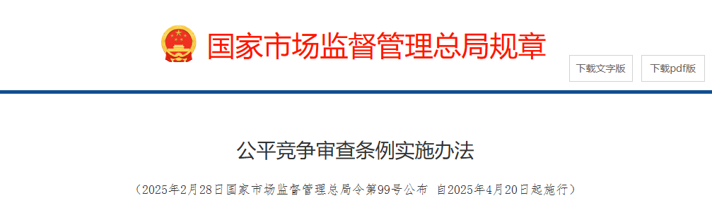 香港中通社3月18日電 據中國國家市場監管總局18日消息,近日,該局發布《公平競爭審查條例實施辦法》(以下簡稱《實施辦法》),將於4月20日正式施行,以加強公平競爭審查剛性約束,維護公平競爭市場秩序,加快推進全國統一大市場建設。