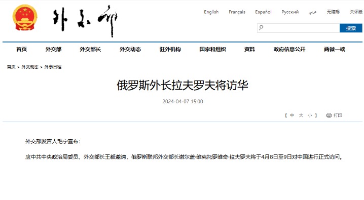 香港中通社3月28日電 中國外交部發言人28日宣布:應俄羅斯外長拉夫羅夫邀請,中國外交部長王毅將於3月31日至4月2日對俄羅斯進行正式訪問。