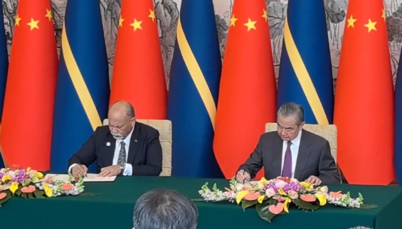 瑙魯駐華使館 圖自央視新聞 2024年1月24日,中國和瑙魯在一個中國原則基礎上恢復外交關係,開啟兩國關係新篇章。瑙魯成為中國第183個建交國。復交以來,兩國關係蓬勃發展,取得豐碩成果。 此前,據中國外交部網站消息,3月26日,中國外交部長王毅在北京會見專程來華出席瑙魯駐華使館開館儀式的瑙魯外長安格明。 另外,3月22日,中國駐瑙魯大使呂進與瑙魯外交部長安格明簽署《中華人民共和國政府和瑙魯共和國政府關於互免持特定類別護照人員簽證的協定》。協定將在兩國履行各自法律程序後正式生效。(完) 【編輯:彭玉婷】