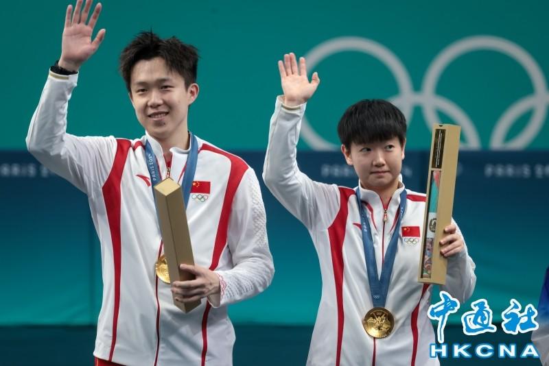 王楚欽(左)、孫穎莎在2024年巴黎奧運會乒乓球混雙項目頒獎儀式上 香港中通社圖片 2024年巴黎奧運會上,王楚欽獲得乒乓球混雙冠軍、乒乓球男子團體冠軍。在混雙比賽中,他與孫穎莎合作奪得金牌,成為中國首對獲得奧運會該項目冠軍的組合。(完) 【編輯:吳一帆】