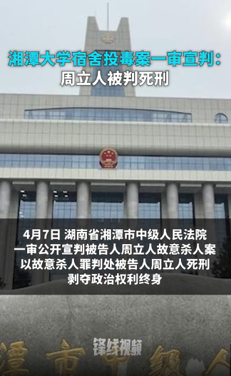 “湘潭大學宿舍投毒案”一審宣判 被告人周立人被判死刑分享到: