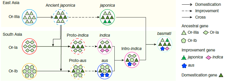 亞洲栽培稻進化路線圖 圖源:中國科學院分子植物科學卓越創新中心 這一參考基因組級別的栽培稻-野生稻泛基因組為原有公認的單個參考基因組新增了38.7億個碱基對,包含69531個基因,其中近20%為野生稻特有的,這些基因被證實與抗病防禦、環境適應性等性狀密切相關。研究發現,野生稻中的抗病基因豐度和多樣性均明顯高於栽培稻,已精準定位到1184個野生稻中拷貝數高於栽培稻的抗病基因位點,其中包含2個已驗證的抗稻瘟病基因。這些發現進一步證實了野生稻堪稱作物改良的“戰略資源庫”,可以為培育抗病耐逆的水稻品種提供直接的基因來源。 基於高質量的基因組序列,對亞洲栽培稻各類群中的早期關鍵馴化基因進行單倍型分析,證明所有亞洲栽培稻的馴化位點均來源於粳稻祖先Or-IIIa,進一步證實了亞洲栽培稻單起源假說,為持續數十年的學術爭議提供了關鍵證據。此外,研究還發現在南亞各栽培稻類群之間存在廣泛的基因交流,并由此定義了一個新的栽培稻亞群intro-indica,成功繪製了一幅全面的水稻進化和馴化路線圖。 綜上所述,這項研究構建了一個近飽和的野生稻泛基因組數據庫,實現了野生稻遺傳資源的系統性整合,有效彌合了野生稻和栽培稻基因組學研究的差距。科學家可據此精準挖掘野生稻優勢等位基因,追溯重要基因的起源,解析水稻環境適應與表型可塑性機制。在糧食安全日益嚴峻的當下,這項研究為實現水稻快速從頭馴化、精準培育抗逆性強、資源利用率高、產量突破的新品種提供了關鍵的基因資源。(完) 【編輯:彭玉婷】