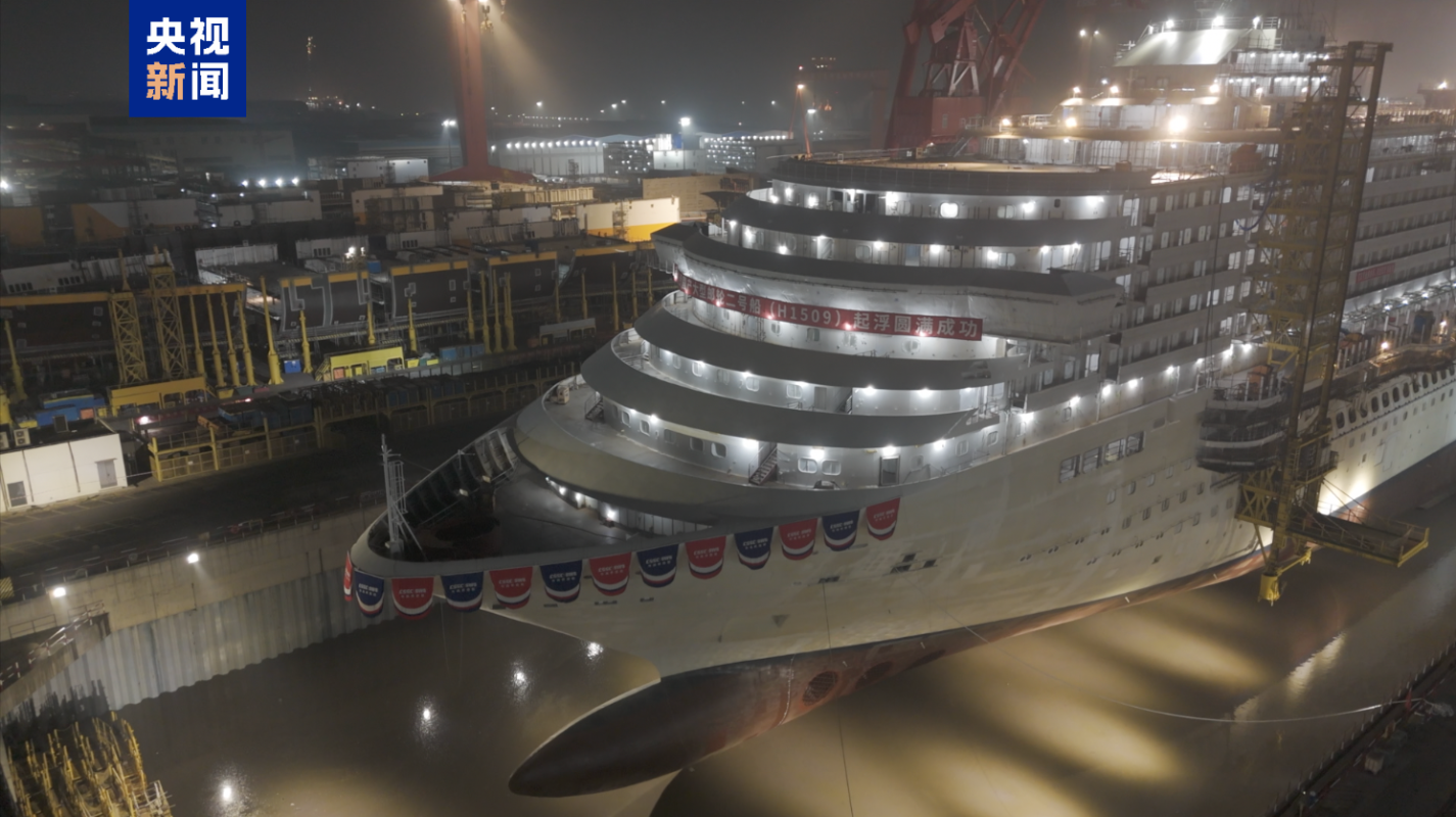 中國第二艘國產大型郵輪愛達·花城號完成塢內起浮分享到: