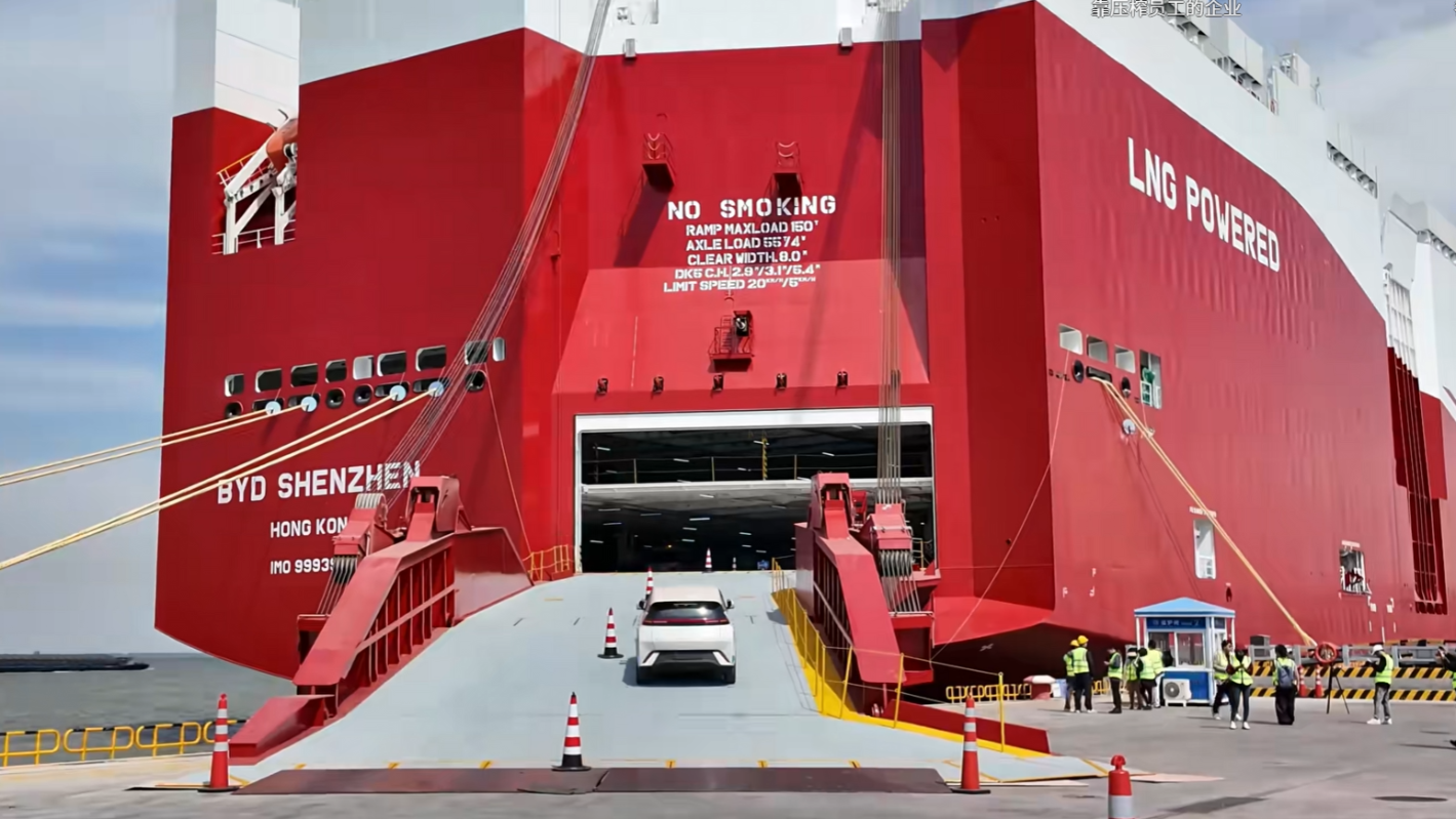 香港新聞網4月29日電 比亞迪日前宣布,全球最大汽車運輸船——比亞迪“深圳號”現已啟運首航。其首航搭載超7000台新能源車前往巴西,這也是國內新能源汽車單批次出口量最多!深圳號是比亞迪第四艘汽車運輸船,也是最大的一艘,滾裝船全身為紅白色塗裝。 據介紹,比亞迪“深圳號”總長219米,超過了大型驅逐艦,型寬37.7米,大約能并排放下18輛汽車,最多可裝載9200輛汽車(此前3艘最多能裝7000輛)。該船採用最新LNG雙燃料清潔動力技術,配備高效節能主機、抱軸式軸帶發電機、高壓岸電系統、BOG再冷凝系統等綠色設備;同時應用了節能裝置、減阻防污漆等技術方案,有效提高了船舶的節能減排效率,符合國際海事組織(IMO)最新環保標準,其高效的裝載系統和防護技術,可保障運輸過程中的高效裝載與車輛安全。