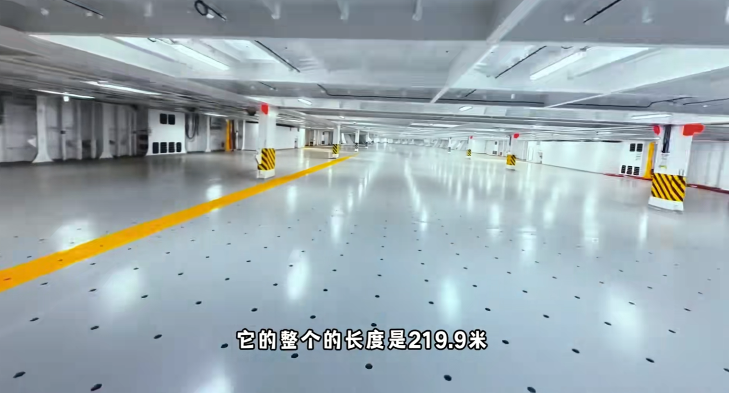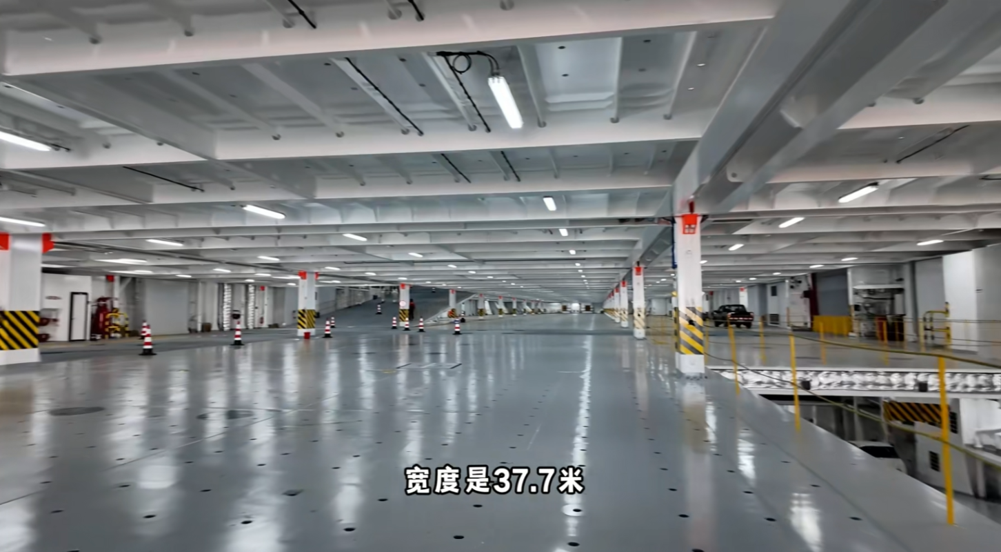 比亞迪深圳號。 據快科技消息,汽車博主“三刀侃車”發視頻展示了比亞迪“深圳號”的內部場景,直呼“太震撼了!”。 船體內部就像是一個立體的停車庫一樣,看起來比很多小區的地下停車場還寬闊。