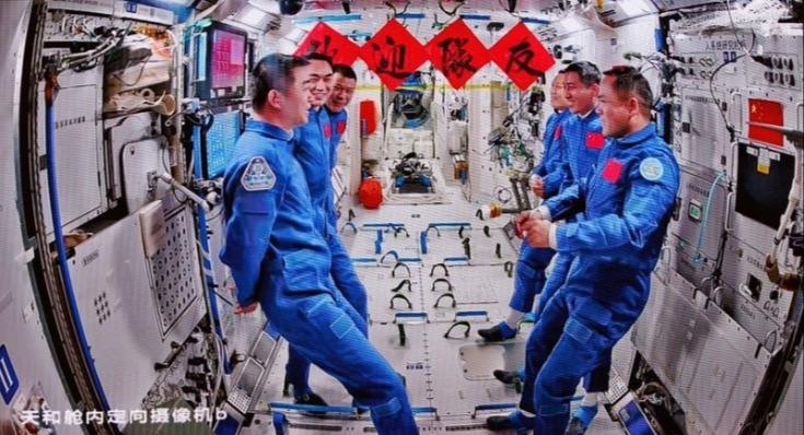 4月24日在北京航天飛行控制中心拍攝的神舟十九號乘組掛上了“歡迎隊友”條幅。新華社圖片 此前在27日下午,神舟十九號、神舟二十號航天員乘組在中國空間站完成在軌交接。 神舟十九號是中國載人航天工程的第十九艘神舟載人飛船,去年10月30日發射成功。在軌期間,航天員乘組圓滿完成三次出艙活動。(完) 【編輯:馬華】