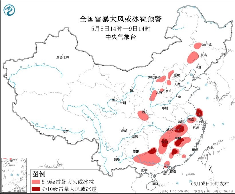 香港新聞網5月8日電 中國中央氣象台8日升級發佈暴雨和強對流天氣黃色預警,中國南方地區在此輪降雨過程中進入降雨最強時段,同時伴有大範圍強對流天氣。