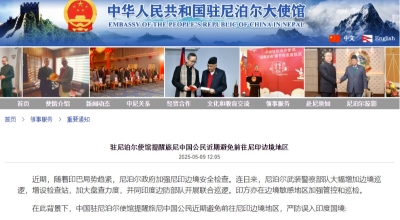 香港新聞網5月9日電 中國駐尼泊爾使館9日發布通知,提醒旅尼中國公民避免前往尼印邊境地區。