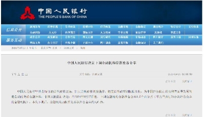 萬億級流動性來了!中國年內首次降準正式落地香港新聞網5月15日電 中國人民銀行近日宣布,自5月15日起,下調金融機構存款準備金率0.5個百分點(不含已執行5%存款準備金率的金融機構),下調汽車金融公司和金融租賃公司存款準備金率5個百分點。