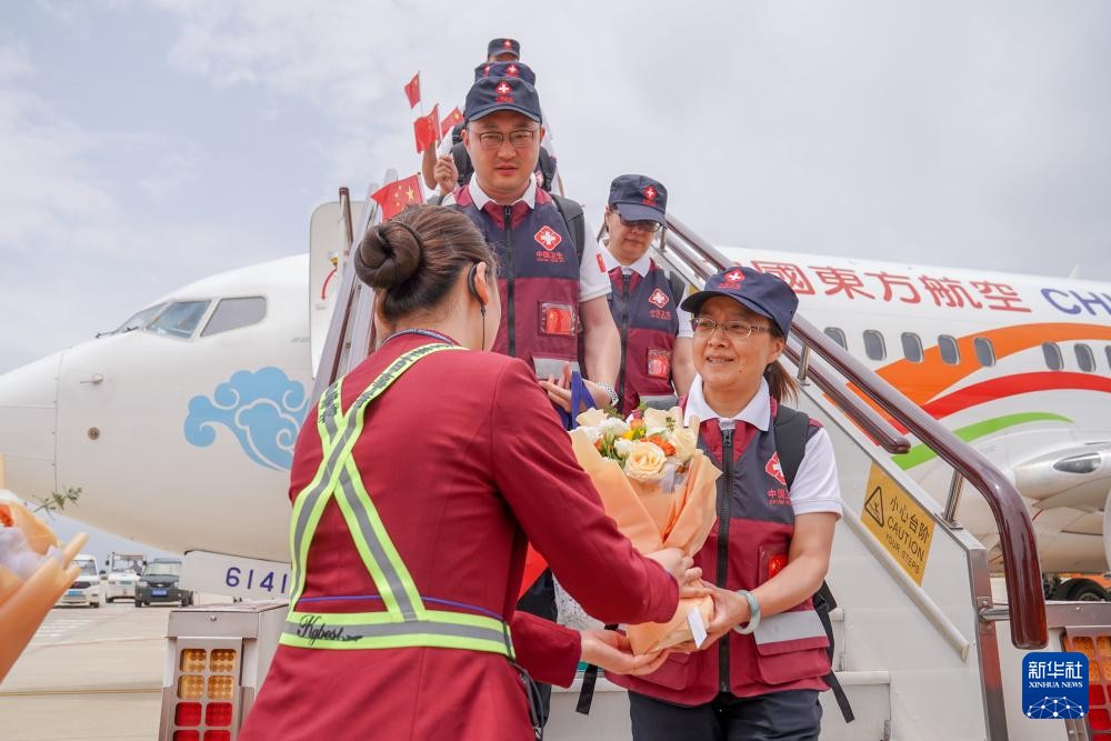 5月18日,工作人員在昆明長水國際機場為中國政府援緬衛生防疫隊隊員獻花。圖片來源:新華社 緬甸7.9級地震發生後,中國政府援緬衛生防疫隊於4月19日出發,赴重災區曼德勒省開展為期1個月的災後衛生防疫工作。 中國政府援緬衛生防疫隊負責人表示,在緬工作期間,防疫隊克服了餘震頻發、高溫酷暑、蚊蠅肆虐、語言不通等諸多困難,深入地震災區開展水質檢測、病媒生物監測、環境消殺、疫苗接種指導、健康教育和心理調節等工作,對4個災民重點安置點開展5輪評估調查,培訓緬方公共衛生專業人員105人,指導開展中國援助的68萬劑霍亂疫苗免疫接種工作,幫助制定13份英文災後衛生防疫技術文件,為緬方提供了長效技術支撐。