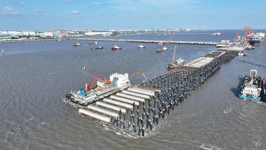 香港新聞網5月19日電 近日,由中交三航局承建的上海臨港新城東港區公用碼頭二期工程項目順利通過竣工驗收。 二期工程位於已建一期碼頭西側,蘆潮港車客渡碼頭和上海電氣重件碼頭之間,共設置2個7萬噸級(GT)滾裝泊位,主要新建包括長740米、寬60米的汽車滾裝碼頭和966米、寬18米的引橋各一座,并同步完成港池疏浚、防撞設施建設、電氣設施等配套工程。二期碼頭竣工投用後,將於一期碼頭協同作業,承接外高橋海通碼頭轉移的滾裝業務,進一步提升港區整體通過能力,預計上海南港滾裝汽車年吞吐量將今年可突破200萬輛。