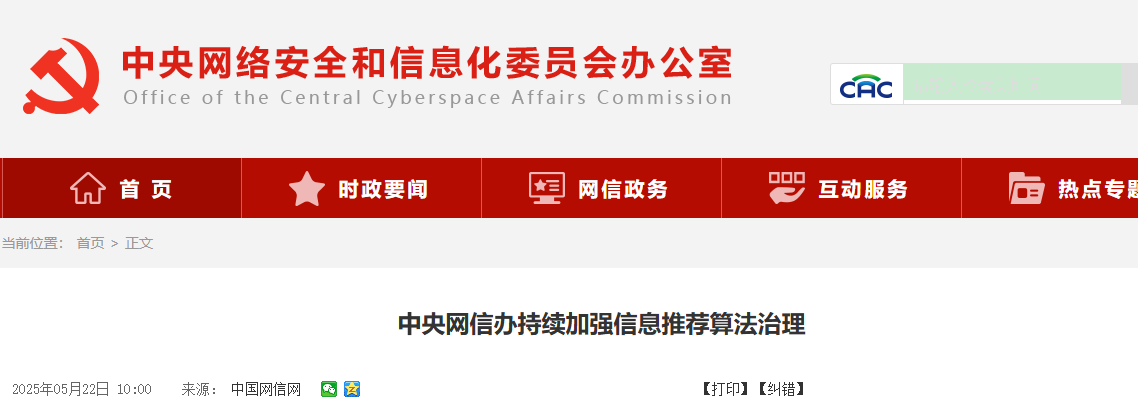 圖源:中國網信網截圖 據中央網信辦22日消息,“清朗·網絡平台算法典型問題治理”專項行動開展以來,針對網民反映強烈的算法推薦加熱低俗信息、加劇“信息繭房”、加重觀點極化等問題風險,中央網信辦督促指導重點平台針對性優化信息推薦算法功能、調整信息推薦算法規則。重點平台積極響應,簽署“算法向善”南寧宣言,完善算法推薦內容審核,開設專門網站、頻道或賬號集中公開算法規則原理,開發上線“繭房評估”“一鍵破繭”等創新功能,完善用戶興趣偏好管理服務,提升算法推薦內容多樣性。