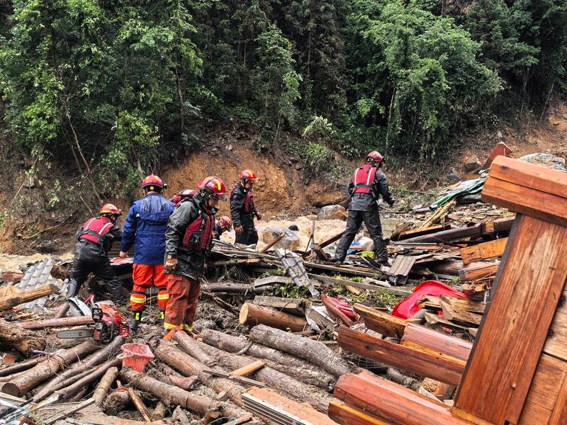 5月23日,救援人員在現場開展救援工作。圖片來源:新華社 據廣西相關部門及龍勝各族自治縣消息,目前,當地應急、消防、公安等部門正在現場開展救援工作。 22日11時,廣西氣象台發布暴雨四級(藍色)預警,同時,自治區氣象局啟動重大氣象災害(暴雨)四級應急響應。