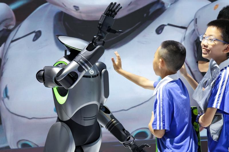 5月23日,孩子們在文博會上與機器人互動。圖片來源:新華社 相較於往屆,今年文博會首設人工智能展區,通過AI全應用場景呈現、AI科技演出、AI共創互動等,創新呈現新質生產力與文產新業態、新消費。全館有60餘家AI領域知名企業參展,包括優必選、聯想,樂聚機器人、凡拓、光峰科技,洲明科技等。 此外,今年文博會的“首發”活動中也不乏科技前沿新品。例如,中國知名科企科大訊飛全球首發了多語種透明屏,去年才於安徽合肥成立的初創企業合翼航空發布了全國首個獲得載人類民用無人駕駛航空器運營合格證的低空觀光航空器模型。