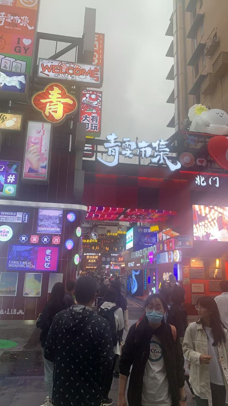 青雲市集成遊人打卡熱點。香港中通社圖。 青雲市集作為青雲路步行街的重要組成部分,於2020年9月1日開始升級改造工作,2022年1月20日正式開街,項目占地60餘畝,建築面積5萬平米,經營業態主要涉及餐飲、娛樂生活服務與文創零售。 陶鋼對記者表示,市集的原址是建材市場,經過投資1.9億改造後,現在已有逾二百家商店進駐,逾九成是貴州本土的商家,只有不足一成是連銷店。自市集改造以來,每年客流量節節上升,市集以其“煙火氣”和“文創”為賣點。他表示,雖然人流有增加,但整體人均消費只有三十多元人民幣,未來會思考如何增加高消費人群,包括進行淘汱制,嚴格篩選符合資格的商家。