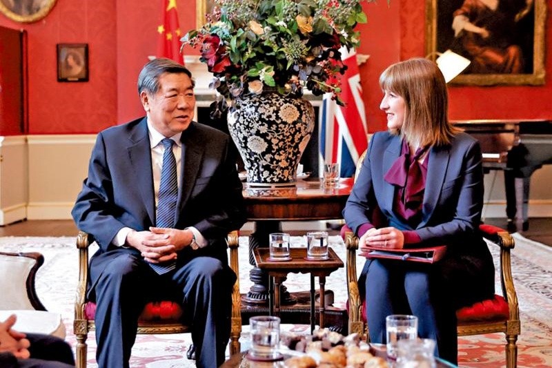 香港中通社6月9日電 當地時間6月8日,中英經濟財金對話中方牽頭人、國務院副總理何立峰訪問英國期間在倫敦會見對話英方牽頭人、英國財政大臣里夫斯,就中英經濟財金合作和雙方共同關心的問題深入交換意見。
