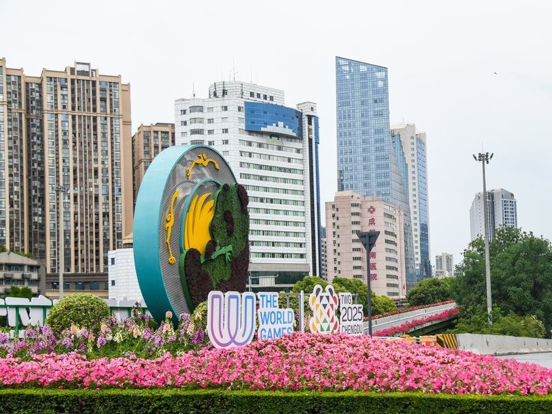 這是4月29日在成都人民南路上拍攝的成都世運會主題景觀。圖片來源:新華社 當天據介紹,成都世運會已啟動三輪門票預訂申請,共計開放涵蓋31個大項、55個分項、229場比賽場次約17萬張門票。為滿足廣大境內外公眾觀賽需求,下一輪門票預訂將適時啟動。 另據內地媒體近日報道,成都世運會特許商品包括翻翻樂、冰箱貼、盲盒、手機掛繩等數十種世運會周邊,賽事吉祥物“蜀寶”“錦仔”以各種萌態呈現,芙蓉花和三星堆等蜀地元素巧妙融合特許商品之中。成都世運會賽事吉祥物“蜀寶”和“錦仔”以大熊貓、川金絲猴為原型。