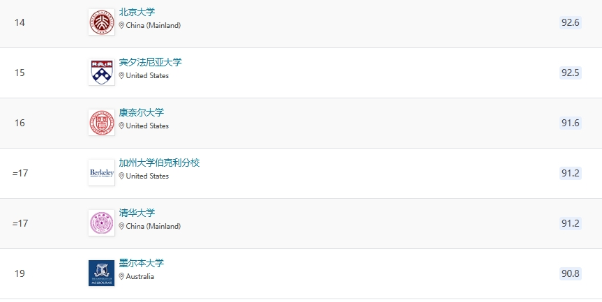 QS世界大學排名:北大第14清華第17分享到:
