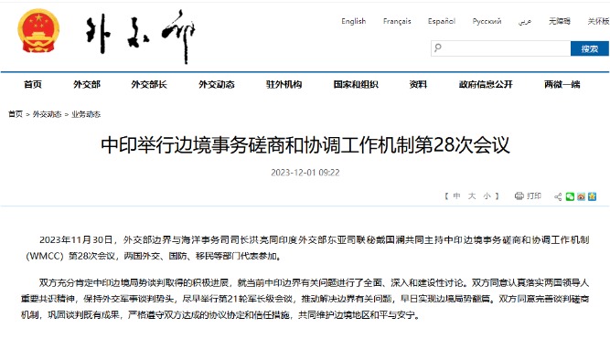 中印邊境事務第34次會議磋商外交國防等議題分享到: