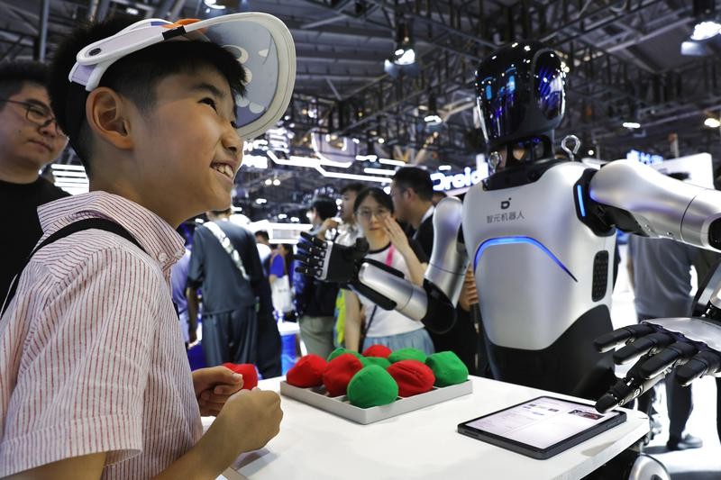 7月26日,小朋友在與機器人進行游戲互動。 當日,2025世界人工智能大會暨人工智能全球治理高級別會議在上海開幕。圖片來源:新華社 同日,以“智能時代 同球共濟”為主題的2025世界人工智能大會在上海開幕。 大會展覽面積首次突破7萬平方米,吸引了800餘家企業參展,集中展示3000餘項前沿展品及100餘款“全球首發”“中國首秀”新品,規模創歷屆之最。 去年展會現場只有18家機器人企業參展,今年則有超80家相關企業參展,甚至還專門開闢了一個展示區域,機器人不僅數量變多了,功能也更加豐富。 與往年相比,本屆大會首創“數學質問、模型質問、科學質問”三問機制,匯聚了包括12位圖靈獎及諾貝爾獎得主在內的全球1200餘位頂尖嘉賓,將人工智能的學術研討推向全新維度。(完) 【編輯:彭玉婷】
