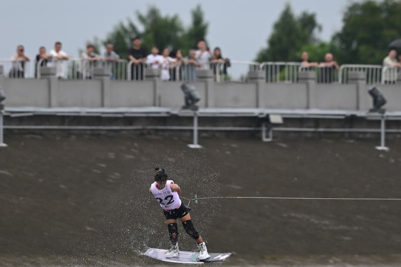 8月10日,冠軍中國選手徐露在比賽中。圖片來源:新華社 據央廣網報道,中國隊多線作戰獲得7枚金牌。其中徐露在女子尾波滑水自由式較量中奪冠。