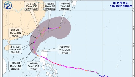 圖源:中央氣象台 福建省於12日9時30分啟動防颱風Ⅳ級應急響應;廣東省於12日11時啟動防風Ⅳ級應急響應。 另外,中央氣象台12日6時發布暴雨藍色預警:預計12日至13日,河南南部、湖北中部和西南部、湖南西部和北部、貴州東部和南部、雲南北部、河北西部和東北部、北京西部和北部、天津北部、台灣島東北部、西藏東南部等地部分地區有大到暴雨,其中,河南南部、湖北東北部和西南部、湖南北部等地部分地區有大暴雨(100至140毫米),局地有雷暴大風等強對流天氣。(完) 【編輯:彭玉婷】