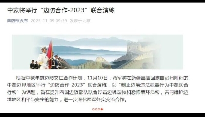 8月15日下午,中國國防部新聞局副局長、國防部新聞發言人蔣斌大校就近期涉軍問題發佈消息。圖源:國防部網 本次聯合行動演練以應對打擊跨境違法犯罪活動為課題,進一步加強聯合管邊控邊能力,深化中蒙雙方傳統友誼與務實合作。 據中國國防部此前消息,應蒙古國防部邀請,6月中旬,中國人民解放軍陸軍派分隊赴蒙古參加“可汗探索-2025”多國維和演習。 蒙古同中國陸上相鄰4710公里,是與中國陸地邊界線最長的鄰國。中蒙於1949年10月建立外交關係。建交70多年來,兩國睦鄰友好始終是主流。尤其是近20年來,兩國關係發展迅速,成果顯著。(完) 【編輯:彭玉婷】