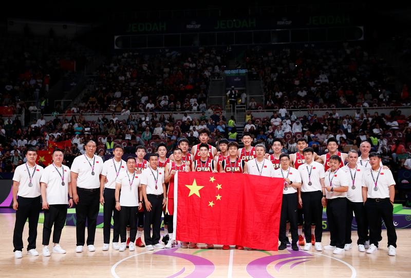 8月17日,中國隊在頒獎儀式後合影。圖片來源:新華社 綜合媒體18日報道,這是中國隊自2015年長沙亞錦賽奪冠後,時隔十年再次闖入亞洲杯決賽,展現了頑強的鬥志和不俗的實力。 決賽對陣世界排名第七的澳大利亞隊,中國男籃雖排名僅第30,卻展現出強大競爭力。比賽首節,胡金秋快攻上籃為中國隊率先得分,胡明軒內外線連續命中,幫助球隊以25:17領先。次節,中國隊火熱手感延續,王俊傑內外開花,一度將分差拉開至15分。盡管澳大利亞隊憑借內線優勢逐漸追分,胡明軒關鍵三分穩住局面,半場結束中國隊以46:42領先。