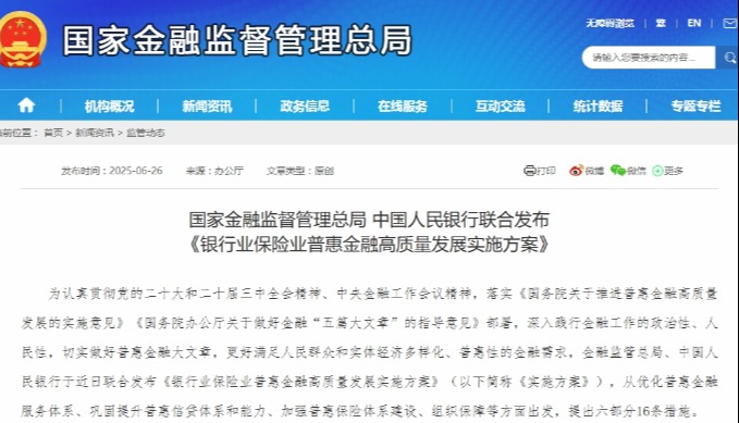 中國國家金融監督管理總局外景(新華社資料圖) 據了解,金融監管總局近日印發《關於銀行業保險業支持福建建設兩岸融合發展示範區的若干措施》,從銀行業保險業支持福建發揮對台前沿區域優勢的角度,在推進兩岸銀行業保險業融合發展、深化閩台金融業務合作,提升對台金融服務質效、促進閩台經貿人員往來,優化台胞金融服務體驗、便利台胞在閩生活,全面加強金融監管、有效防範化解金融風險等四方面共提出16條政策措施。 金融監管總局表示,下一步將持續推動措施各項內容落地,進一步加強銀行業保險業支持海峽兩岸融合發展力度,助力兩岸融合發展示範區建設。(完) 【編輯:淩玉輝】