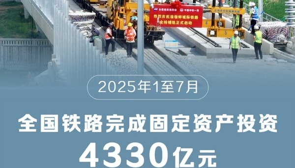 香港中通社9月14日電 據中國國家鐵路集團(國鐵集團)14日消息,今年1至8月,中國鐵路完成固定資產投資5041億元,同比增長5.6%,一批重點建設項目穩步推進。