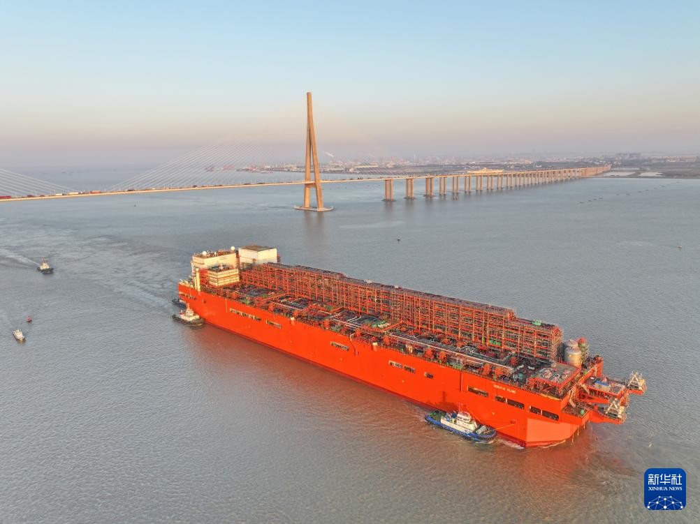香港中通社9月14日電 9月14日,中國自主研發建造的最大噸位、最大儲氣量的新型海上浮式液化天然氣裝置(NGUYA FLNG)從南通沿海順利出港交付。
