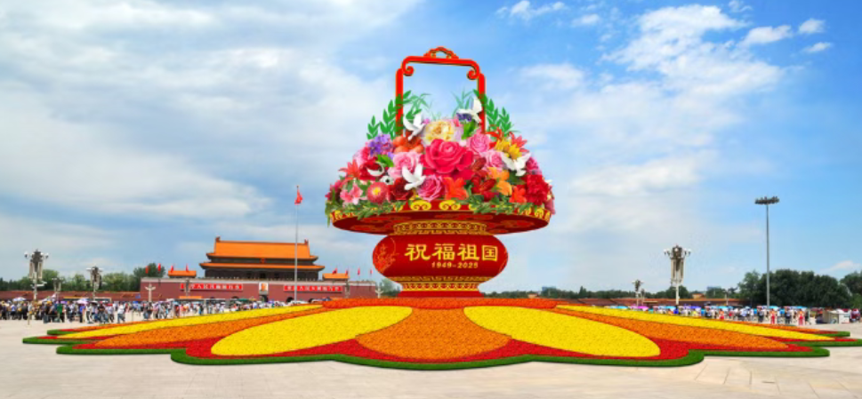 圖:北京日報 天安門廣場中心“祝福祖國”花壇以巨型花籃為主景,底部直徑45米,呈向日葵圖案,寓意葵花向陽。花籃高18米,籃體南側書“祝福祖國,1949-2025”,北側書“歡度國慶,1949-2025”。籃內選用荷花、月季、珙桐等花卉,結合和平鴿元素,寓意和平發展、欣欣向榮,表達對祖國繁榮和世界和平的美好祝願。 長安街沿線建國門至復興門布置10組立體花壇,延續中國人民抗日戰爭暨世界反法西斯戰爭勝利80周年紀念活動風格,經元素更換和植物調整,展現中國式現代化新篇章。花壇包括“和平發展”“光輝歷程”、“黃河讚歌”等,分別以和平鴿、延安寶塔山、壺口瀑布等為主景,寓意深遠。其中,“黃河讚歌”花壇配有《我和我的祖國》音樂,增添喜慶氛圍。 值得留意,今年首次採用市花月季作為焦點花,並引入67個新優品種和鄉土植物,如萬壽菊“橙玉”、百合“霞幕星光”、大花型香彩雀“守護天使”系列等,展示北京花園城市建設的靚麗風景。首次應用的“會發光”鴿子造型為花壇增添靈動亮點。花壇植物色彩從紀念活動的莊嚴轉為國慶的明快喜慶。 此外,第二屆“千家萬盆”活動遴選市民栽培的優質花卉裝飾長安街,踐行“花園城市人人在行動”理念。沿線還布置7000餘平米地栽花卉及5座月季景觀橋區,打造“神州第一街”節日盛景。(完) 【編輯:葉永成】