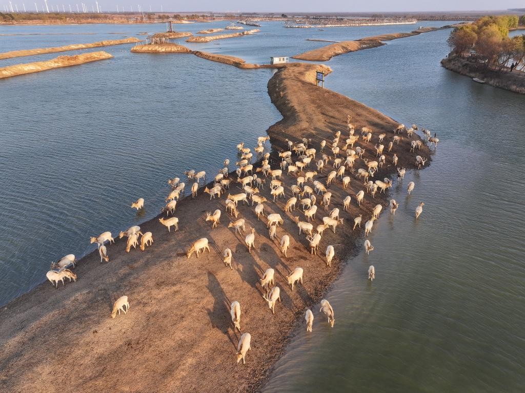 資料圖:在大豐野鹿蕩拍攝的麋鹿(無人機照片)。圖片來源:新華社 麋鹿別名叫“四不像”,曾在中華大地生活上百萬年,是中國特有物種,對維護濕地生態系統安全和營養功能完整具有重要價值。後因人類捕殺、棲息地破壞等原因,麋鹿種群逐漸稀少。至清末,僅存於北京南海子皇家鹿苑的數十頭麋鹿因戰亂流散到海外。 歷史研究表明,鹽城大豐是麋鹿的故鄉。1986年,世界自然基金會從英國動物園和公園中挑選了39頭麋鹿贈送給鹽城大豐保護、繁育。 1997年12月,江蘇大豐麋鹿保護區升格為中國國家級自然保護區。2019年,江蘇大豐麋鹿國家級自然保護區被列入世界自然遺產“中國黃渤海候鳥棲息地(第一期)”遺產區域名單,成為中國首個濱海濕地類型的世界自然遺產地。(完) 【編輯:彭玉婷】