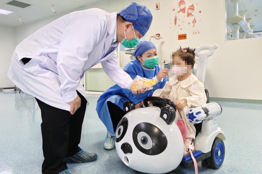 9月23日,南京市兒童醫院的醫護人員與患兒交流互動。新華社發(南京市兒童醫院供圖) 據新華社報道,手術歷時9小時,由南京市兒童醫院名譽院長、心臟中心主任莫緒明團隊聯合天津泰達國際心血管病醫院院長劉曉程團隊共同完成。術中,團隊攻克了狹小胸腔的器械空間分配、左右心血流平衡等難題。術後一周,患兒已能正常進食和短距離行走。 這名患兒3年前被確診為罕見的限制型心肌病,今年7月病情急劇惡化,心衰指標遠超危險閾值。因5歲幼兒心臟供體極度稀缺,醫院與家屬充分溝通後,決定為其實施雙心室人工心臟植入手術。 據悉,兒童心臟衰竭是醫學界長期面臨的難題。對於終末期心衰患者,除心臟移植外,被稱作“人工心”的“植入式心室輔助裝置”是重要治療手段。 全球範圍看,“植入式心室輔助裝置”的技術持續迭代,歷經第一代搏動式 “人工心”、第二代軸流式“人工心”,目前已發展至第三代磁懸浮“人工心”。但“人工心”最初是針對成人設計,低齡、低體重患兒因胸腔狹小等限制,無法與其適配。 莫緒明說,此次手術的患兒情況更為特殊,不僅體重很輕、胸腔很小,且心腔遠小於正常兒童,傳統“人工心”無法適配。此外,患兒左右心同時衰竭,需要通過雙心輔助實現左右心血流平衡。