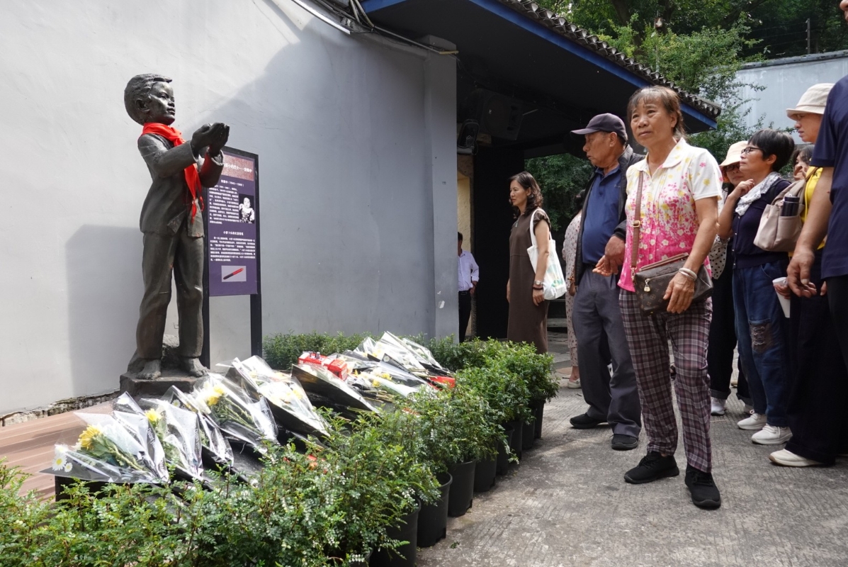 香港中通社記者 陳卓儀攝 香港媒體川渝參訪團近日到訪重慶多個紅色景點,渣滓洞、白公館,還沒到國慶黃金周假期,來自全國各地的遊客已經擠滿山城。香港中通社記者在這兩個看守所舊址看到,現場設有鮮花供獻祭,遊客有老有少,不少是紅色專線旅遊團。