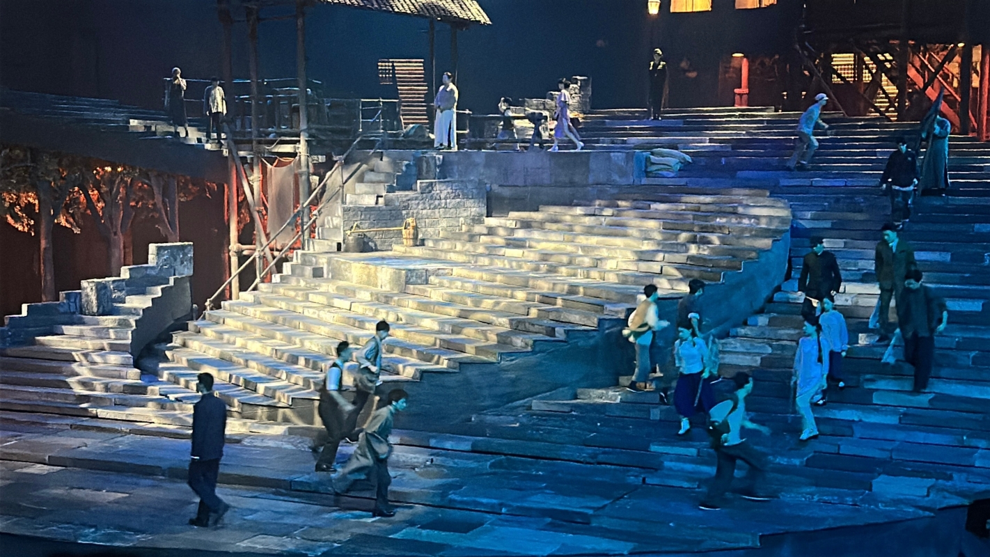 香港中通社記者 陳卓儀攝 走在重慶街頭,經常能看到一部歷史劇的宣傳海報——《重慶·1949》,其設計巧妙的旋轉舞台,火爆外網,圈粉無數。該劇講述的是被關押在渣滓洞、白公館的中國共產黨人,經受酷刑折磨,不寧死不屈的故事。 最特別的是,重慶1949大劇院是專門為《重慶・1949》演出而建,顛覆了傳統劇場概念。重慶1949藝術團團長徐善濤介紹,劇院運用了世界上最先進的科技手段,形成了五個獨立圓環,可以同時360度旋轉,舞台在轉,觀眾席也可以轉,將傳統的劇場舞台升級為360度互動沈浸舞台。“舞台和觀眾席都是為了劇情打造每一個細節,希望通過這部作品,讓更多的人,特別是年輕人了解這段歷史,銘記這段歷史。”