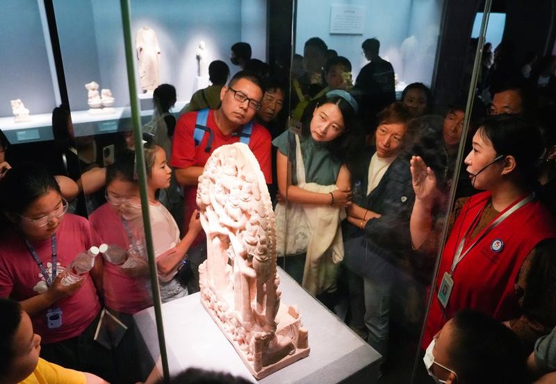 10月3日,遊客在河北博物院內觀展。圖片來源:新華社 其中江蘇、陝西、浙江、四川4省接待觀眾超500萬人次。中國65家國家考古遺址公園觀眾達539萬人次,同比增長6.1%。 國慶中秋假期期間,陝西全省文博單位共接待觀眾748.06萬人次。其中,秦始皇帝陵博物院接待遊客44.6萬人次,位居陝西全省文博單位之首。另外,陝西歷史博物館20.7萬人次,西安碑林博物館5.02萬人次,漢景帝陽陵博物院1.63萬人次,陝西考古博物館3.4萬人次。 成都武侯祠博物館工作人員表示,中秋國慶假期門票多日售罄,多項數據創新高,8天累計接待觀眾82.44萬人次、單日接待最高達14.34萬人次,同比分別增長22.66%和45.38%。 四川博物院工作人員表示,中秋國慶假期間參觀人次較去年同比增長19.5%,講解354批次,同比增長78.8%。成都金沙遺址博物館工作人員透露,館內累計接待遊客約12萬人次,比去年同期增長約15.2%。杜甫草堂博物館表示,此次假期共接待海內外觀眾32.5萬餘人次。(完) 【編輯:彭玉婷】