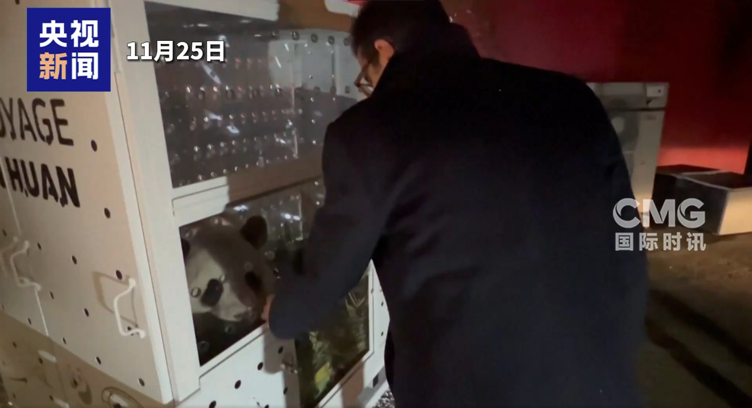 圖為旅法中國大熊貓“歡歡”“圓仔”11月25日啟程返回中國。圖源:央視新聞 隨後這兩隻大熊貓被轉運至成都大熊貓繁育研究基地隔離檢疫場進行為期至少1個月的隔離檢疫。 由於“歡歡”被診斷出腎衰竭提前回國,結束了它們在法國的十多年生活。 大熊貓“歡歡”2012年1月赴法國博瓦勒野生動物園參與中法大熊貓繁育合作計劃,原定租期10年。2021年成功產下雙胞胎幼崽"歡黎黎"與"圓嘟嘟"。據悉,大熊貓“歡黎黎”“圓嘟嘟”將繼續留法至2027年1月項目結束。(完) 【編輯:彭玉婷】