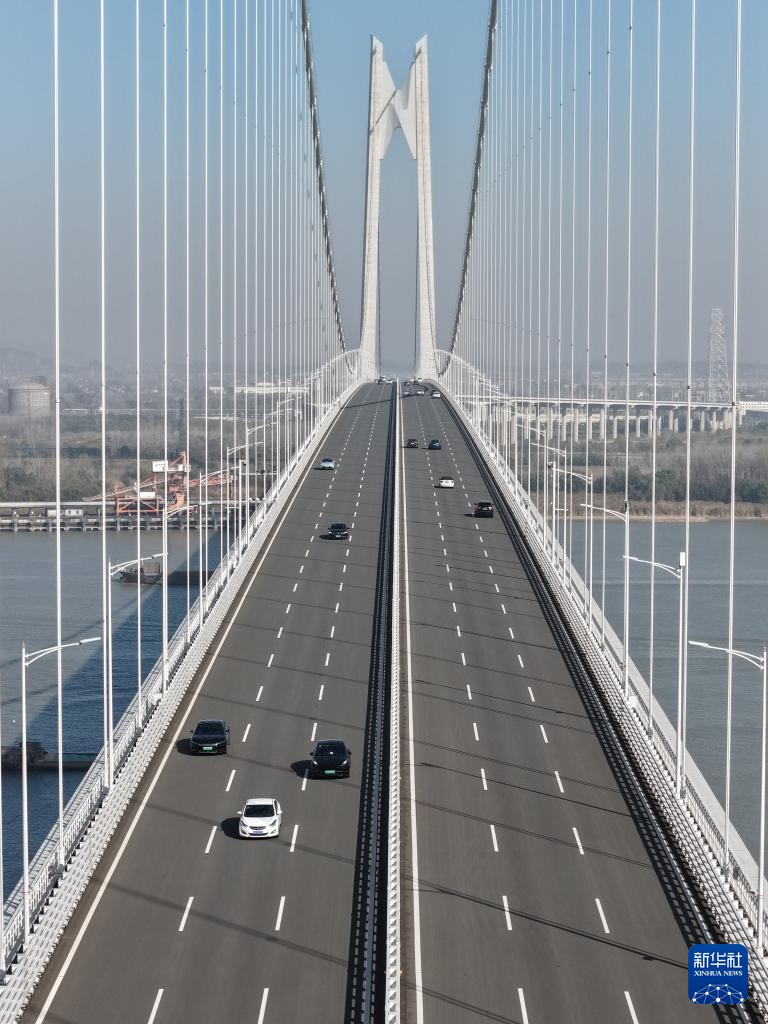 11月26日拍攝的南京新生圩長江大橋(無人機照片)。圖片來源:新華社 這一長江大橋通車,有助於提升南京長江幹線過江能力、完善區域路網體系。據了解,江蘇省已累計建成過長江通道21座,其中4座於“十四五”時期建成通車,基本實現隔江相望的縣(市、區)均有過江通道聯通,有力促進跨江融合、南北聯動。(完) 【編輯:彭玉婷】