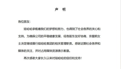 宗馥莉卸任娃哈哈集團公司董事長分享到: