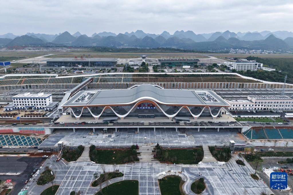 資料圖為11月12日拍攝的盤興高鐵興義南站(無人機照片)。新華社圖片 據悉,盤興高鐵最高時速按250公里運營,開通運營初期,每日開行7對動車組列車,均為跨線動車組列車。貴陽北、銅仁、重慶西、成都南站至興義南站最快分別2小時1分、3小時54分、4小時29分、6小時26分可達。 盤興高鐵穿越岩溶地帶,沿線地質條件複雜,施工難度大。2020年7月全線開工建設。盤興高鐵在盤州站連接滬昆高鐵並進入全國高鐵網,途經萬峰林等旅遊景區,開通運營後,興義市將進入高鐵時代。(完) 【編輯:彭玉婷】