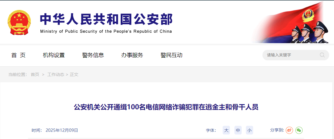 中國公開通緝100名電信詐騙犯罪在逃金主和骨幹人員分享到: