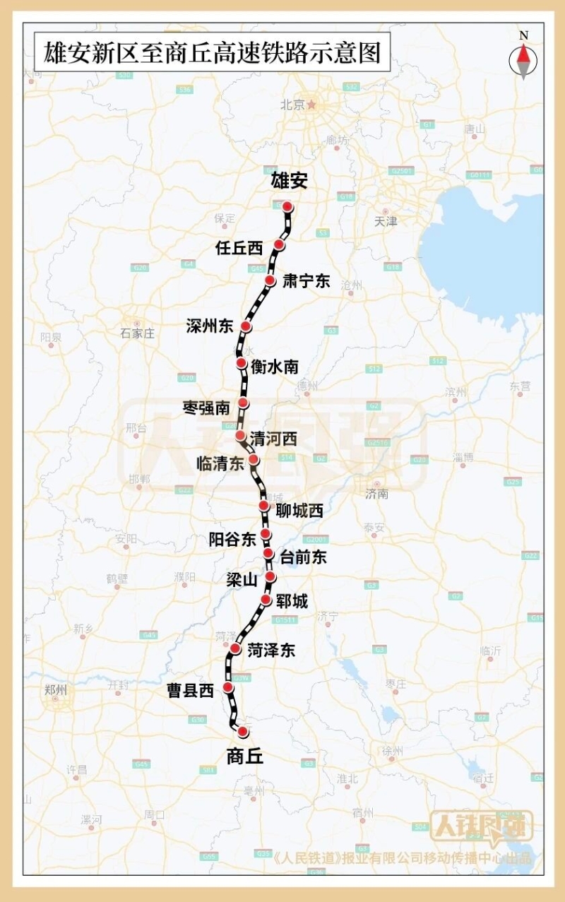 京港高鐵雄商段鋪軌施工現場 圖片來源:北京鐵路公眾號 京港高鐵雄商段北起雄安站,向南經滄州、衡水、邢台、聊城、濟寧、菏澤等地至商丘市,正線全長552公里,設計時速350公里,於2022年10月開工建設。共設16座車站,其中河北境內設有6座新建車站。