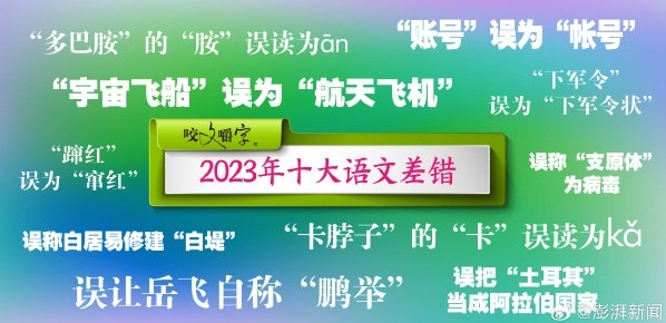 香港中通社1月6日電 中國《咬文嚼字》編輯部6日在上海公布2025年十大語文差錯,包括緬甸首都誤為“仰光”等語文生活中出現頻率高、覆蓋面廣的差錯入選。