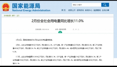 中國年用電量首超10萬億千瓦時 相當於美國兩倍多分享到: