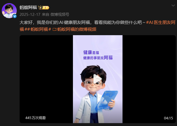 圖片來源:個人健康管家“阿福”微博賬號截圖 1月初,OpenAI正式推出ChatGPT Health。數據顯示,全球每週有超過2.3億人次通過其諮詢健康問題。2025年12月,螞蟻集團為其個人健康管家“阿福”上線,一個月內活躍用戶數突破3000萬,單日提問量超過1000萬次。這不僅反映出用戶對健康服務的高頻需求,也意味著搜索引擎主導醫療信息的時代正在終結,智能體接管個人健康的時代已然開啟。 記者體驗發現,如今的“個人健康管家”不再僅僅是一個問答框,而是實現了從日常監測到在線問診、線下就醫的全鏈路覆蓋。用戶進入首頁即可查看步數、心率、睡眠等指標,並可同步其他智能設備的數據。上海《新聞晨報》此前報導,該系統連接了全國5000家醫院和30萬名真人醫生,包括多位院士在內的500多位名醫,都在阿福上開設了“AI分身”,這些數字人分身學習了名醫的專業知識和臨床經驗,能夠24小時響應用戶的諮詢。 因此,AI智能體不僅能“聊天”,更能“辦事”,從掛號、在線問診到線下就醫,都能通過它來完成。例如,記者輸入“找心臟方面的醫生”後,管家便提供了國內多家醫院醫生的介紹,可直接選擇“在線問診”或“預約掛號”。此外,用戶還可以查詢醫保使用情況、進行醫學報告解讀,系統也設有“小目標”等主動健康管理功能,引導用戶改善健康習慣。 林紅認為,在醫療資源長期短缺的背景下,可穿戴設備與AI智能體的結合降低了就醫門檻,推動治療方式從“診室中心”走向“持續陪伴”,疾病預測與早期干預將成為其核心能力,例如:實時監測心率變化,在使用者感到不適前便發出預警。IDC預計,到2028年,可穿戴設備將通過沉浸式引導實現治療自動化,從而減少30%的面對面就診次數。 林紅指出,當前中國用戶的就醫行為已在技術加持下發生改變,“診前諮詢”顯著提升了服務黏性。相較傳統互聯網醫療服務,新一代健康管家實現了突破,有望破解行業長期面臨的發展困境。“ChatGPT Health功能相對單一,主要聚焦於回答健康相關問題,在整個醫療服務生態體系中的作用較為有限。與此相比,中國的健康助手不僅可以諮詢和解答醫學健康問題,還能與其他軟件、硬件等生態化產品整合,提供涵蓋診前諮詢、掛號、線上問診、支付、用藥、隨訪全鏈路的生態化服務,有望系統性解決用戶的就醫需求。”(完) 【編輯:林曉惠】